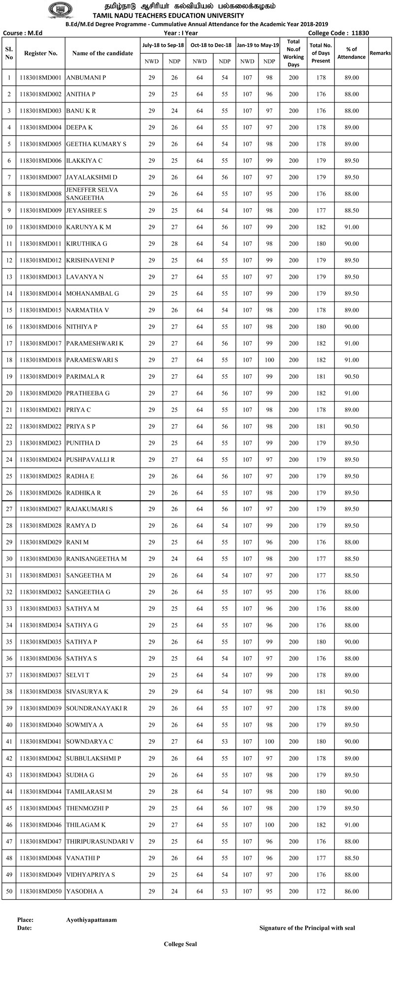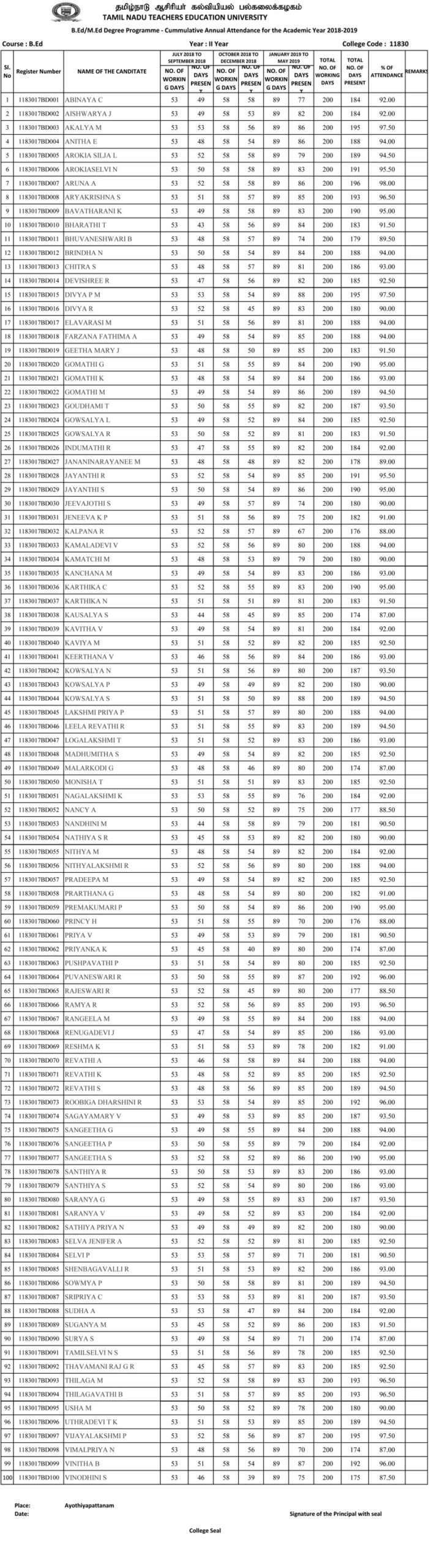Course : B.Ed / Year : First Course : B.Ed / Year : Second Course : M.Ed / Year : First Course : M.Ed / Year : Second